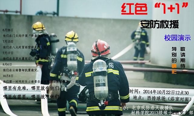 为进一步加强在校学生安全防护意识,使同学们了解民防系统和救援队的工作内容、救援方式,感受公益救援的奉献精神,安博官方网站材料学院2013级硕士2班党支部特邀请北京民防浩天救援队到我校进行民防科学普及和救援现场演示。