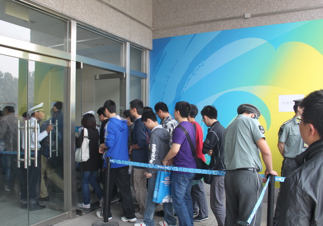 在各学院、保卫处、体育部、后勤集团的大力配合下,在招生就业工作处的积极组织和妥善安排下,中国航天科技专场招聘会定于25日上午9点半开始。当日,招生就业处、各学院、保卫处、体育部、后勤集团的工作人员早早就来到现场进行准备,从6点起,热情的同学们就陆续来到体育馆门前,在保安人员的引导下,自觉排队等候。招聘会正式开始时,同学们的纵队已经长达几百米,从体育馆西门延伸至五号教学楼附近。