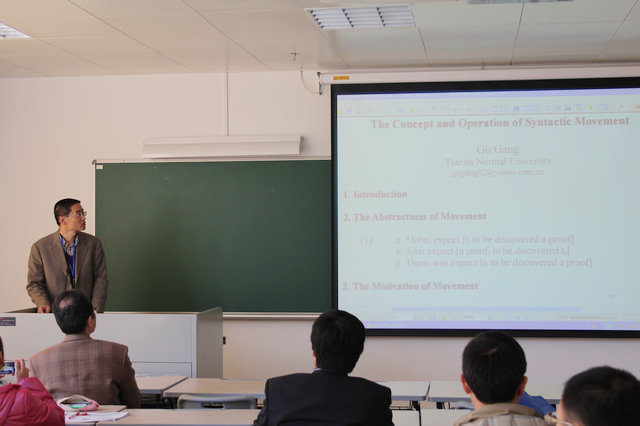 我校外国语学院李京廉教授参加了这次学术研讨会,并做了《再论现代汉语存在句的句法衍生》的分会发言。