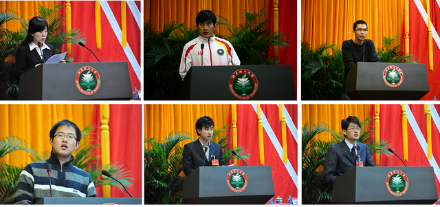 在计票过程中,设计与艺术学院2009级本科生刘蕊,管理与经济学院2010级博士生、校足球队队员杨阳,法学院2011级硕士生吴拉尔斯,生命学院2008级博士生徐建栋,机械与车辆学院团委副书记董路宁先后代表我校“青春榜样”先进人物、团队作事迹报告。设计与艺术学院团委书记周明宇代表专职团干部分享了他从事共青团工作以及到内蒙古赤峰市巴林右旗挂职锻炼的经历与心得。