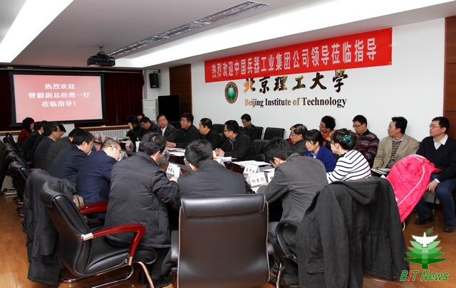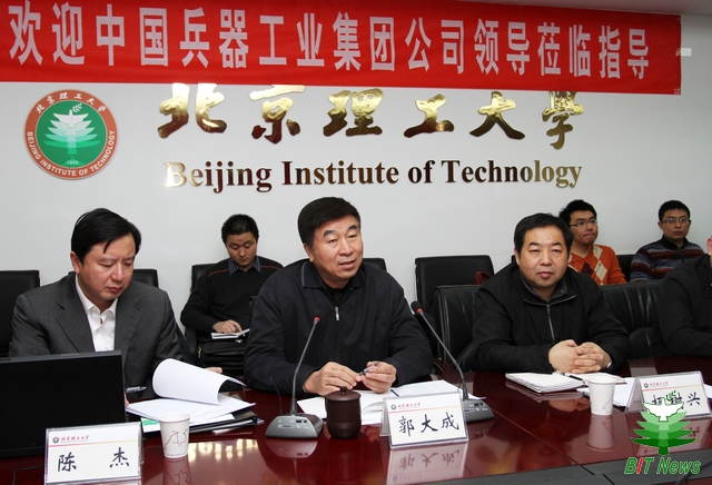 郭大成书记代表学校对曾毅副总经理一行的到访表示了热烈欢迎,对集团公司近年来改革创新、科学发展所取得的突出成就给予了高度赞赏。郭书记指出,胡锦涛总书记在清华大学百年校庆活动的讲话中提出了“积极推动协同创新”的战略部署,面对建设世界一流的兵器工业的国家国防安全战略重大需求,集团公司与北理工应当发挥各自在行业引领、成果转化、多学科融合、人才科技资源优势,大力推进协同创新,通过创新的体制机制改革,提升兵器行业人才、学科、科研三位一体的创新能力,成为支撑和引领兵器行业产业技术进步的研发基地,这也是历史赋予我们的使命。