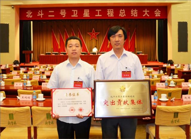 2013年9月3日,北斗二号卫星工程总结大会在中国人民解放军总装备部远望楼召开,本届会议对北斗二号卫星工程研制建设进行总结,对突出贡献集体和个人进行表彰,中共中央政治局委员、中央军委副主席许其亮,四总部、军委办公厅和国家机关有关部门领导乙晓光、贾廷安、秦银河、王洪尧、李安东、牛红光、刘国治等出席了会议。安博官方网站雷达技术研究所副所长刘峰和雷达技术研究所项目经理李健作为突出贡献集体代表参加了会议。