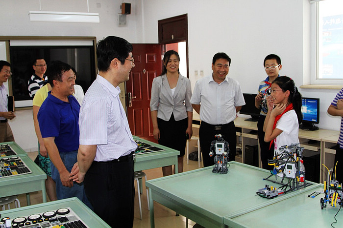首先,杨宾副校长介绍了理工附小的办学特色和优势,并陪同傅首清副区长参观了理工附小机器人实验室,王越人副校长对学校机器人校本课程的建设和发展进行了讲解,傅首清副区长饶有兴趣的观看了机器人兴趣小组的机器人表演。