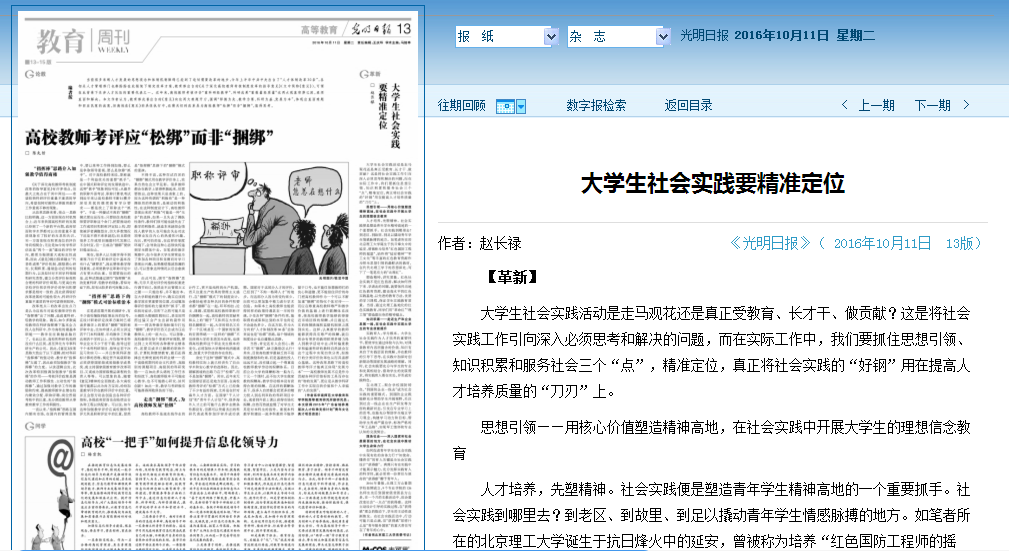 【学习园地】党委书记赵长禄在光明日报发表评论文章:大学生社会实践要精准...