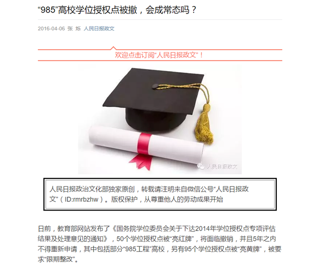 【学习园地】“985”高校学位授权点被撤,会成常态吗?