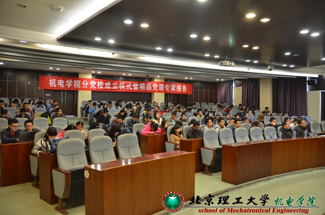 2013年12月5日,北理工机电学院分党校成立仪式暨精品党课专家报告会在研究生楼101举行。校党委组织部部长张笈、机电学院党委副书记、...