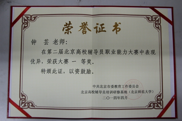 北理工钟芸获得北京高校辅导员职业能力大赛一等奖
