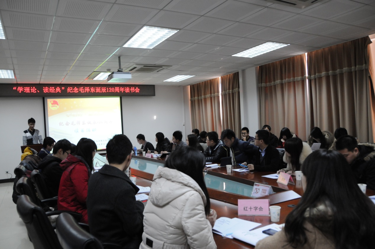 12月21日,由共青团安博官方网站委员会主办的“学理论•读经典——纪念毛泽东同志诞辰120周年读书会”在中关村校区研究生楼111顺利举...