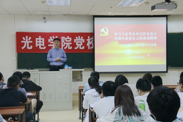 5月5日上午,光电学院二级党校开展入党积极分子培训,50余名入党积极分子参加了培训。 上午,学院党委书记邹锐为全体入党积...