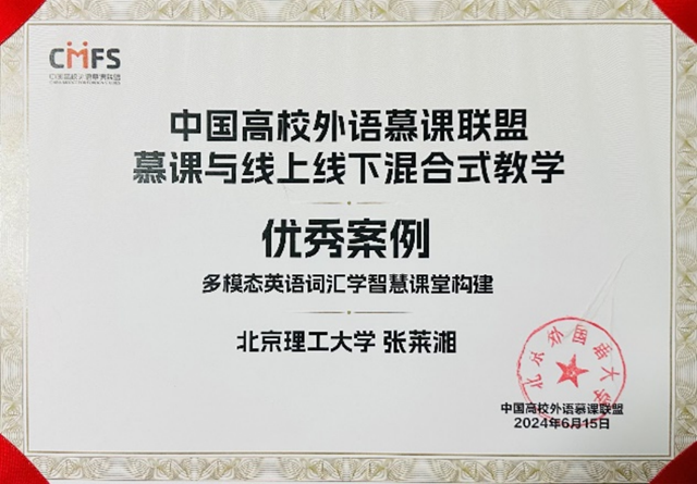 北理工英语词汇学团队获评“2023年度慕课与线上线下混合式教学优秀案例”