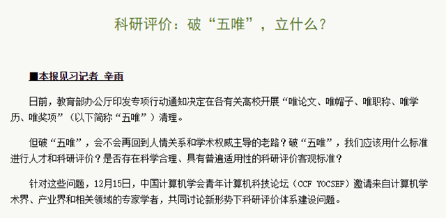 【中国科学报】科研评价:破“五唯”,立什么?