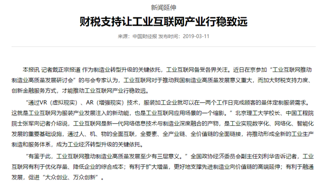 【中国财经报】财税支持让工业互联网产业行稳致远