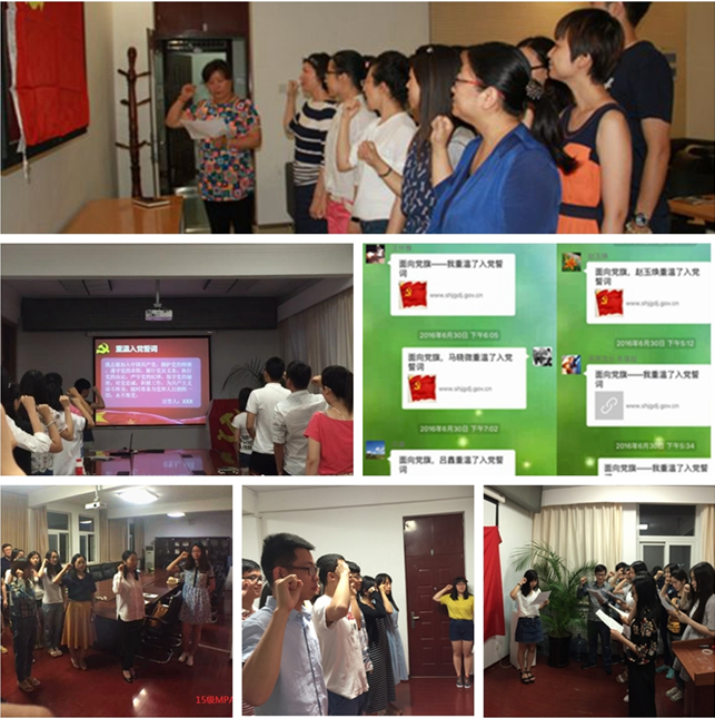 按照学院党委开展集体学习工作的要求,学院11个教工支部、30个学生支部全部组织开展了“重温入党誓词”和参观学习活动。特别是教工支部中的很多留学归国的青年教师亲笔撰写对入党誓词再认识的心得体会,一些教工党支部在微信群里以在线的方式进行“面向党旗,重温入党誓言”活动,不忘入党初心,争做合格党员。